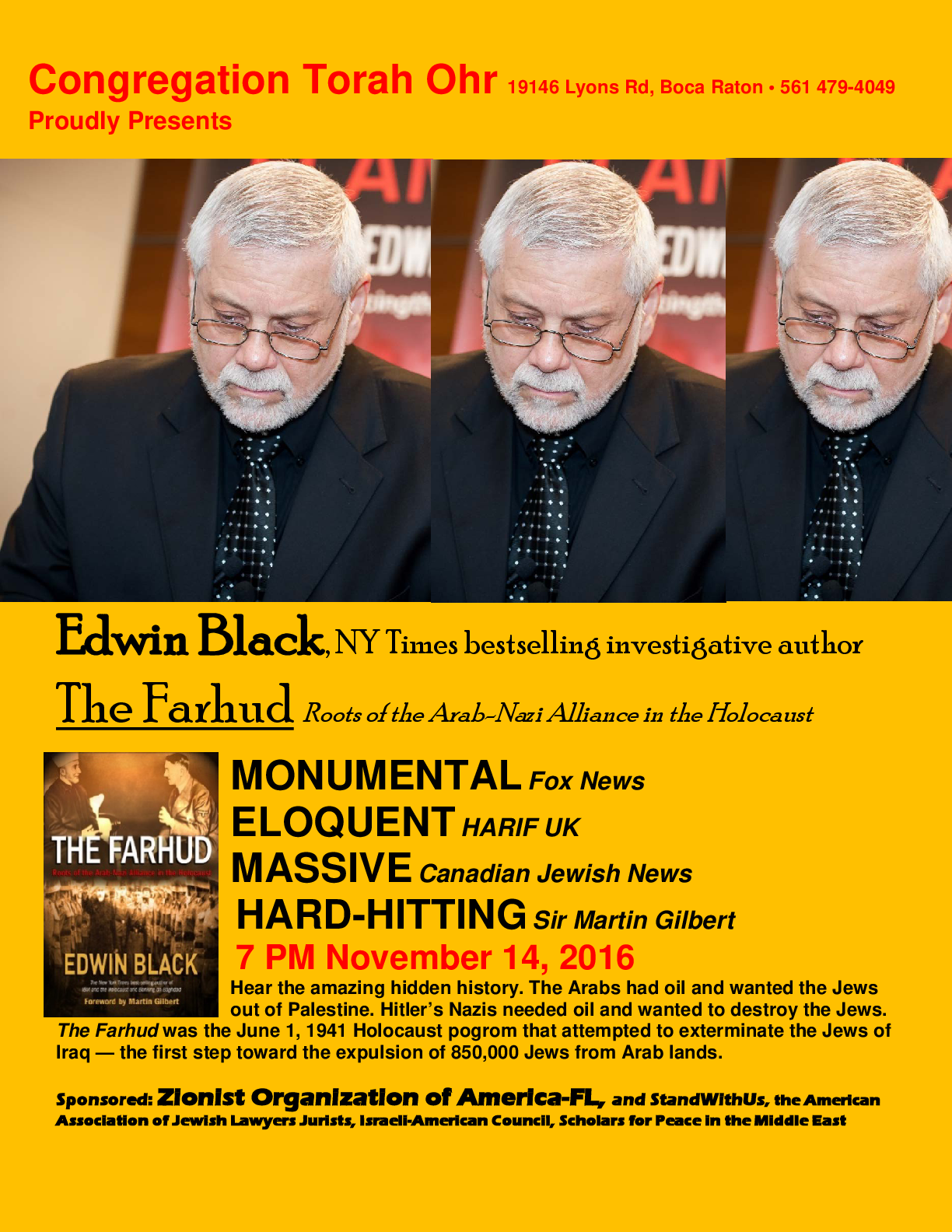 Sponsored by: Zionist Organization of America-FL, in association with StandWithUs, American Association of Jewish Lawyers and Jurists, Israeli-American Council, and Scholars for Peace in the Middle East