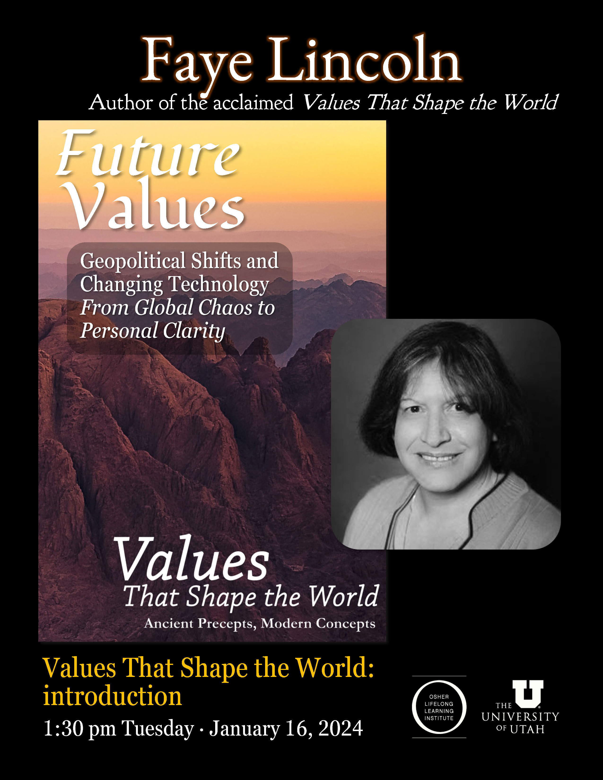 Faye Lincoln’s Future Values #1, the introduction to the course, in which she builds future values foundations based on her Values That Shape the World.