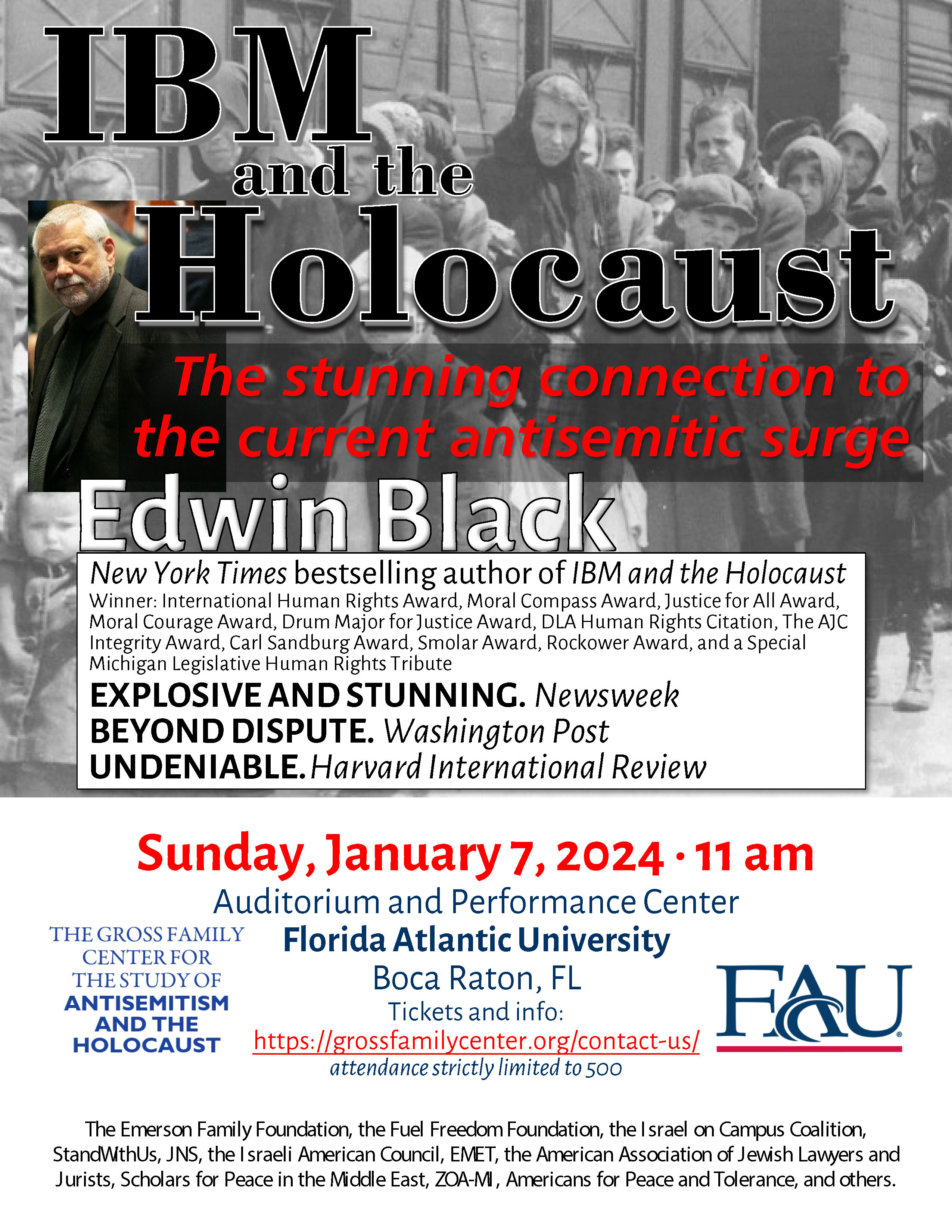 Edwin Black is the award-winning, New York Times bestselling author of IBM and the Holocaust, which Newsweek called “explosive and stunning.”