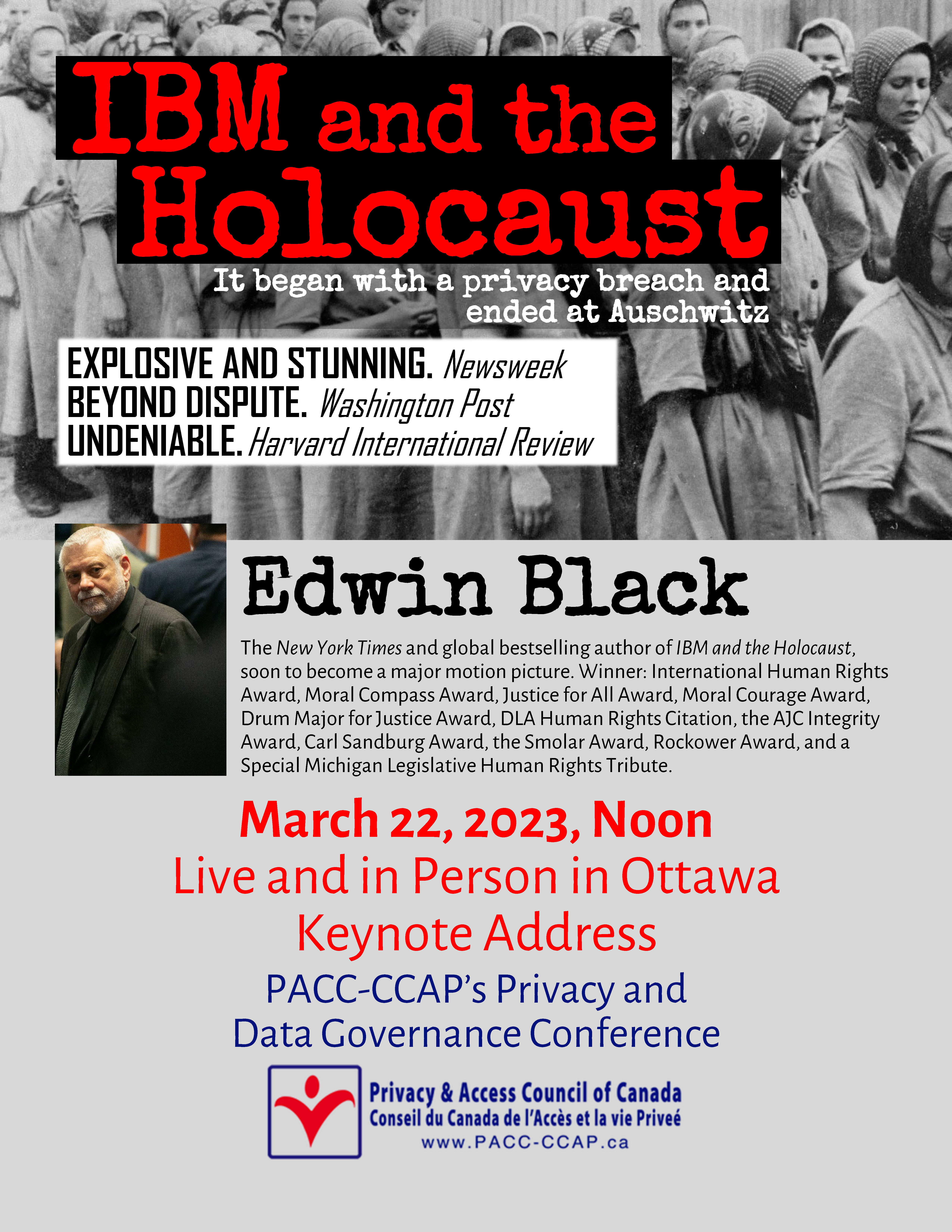 Edwin Black presents the lunchtime keynote at PACC-CAPP’s Privacy and Data Governance Conference.